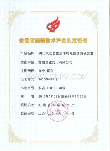 【導讀】泵閥交易網訊黃山良業(yè)閥門有限公司研制的“閥門氣動裝置啟閉轉矩連續(xù)測試裝置”因其有多項技術創(chuàng)新和國家專利,并經用戶使用證明具有良好的市場前景,最近經安徽省科技廳評審,榮獲2012年度安徽省高新技術產品認定證…